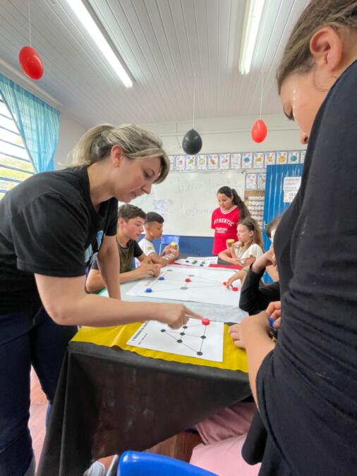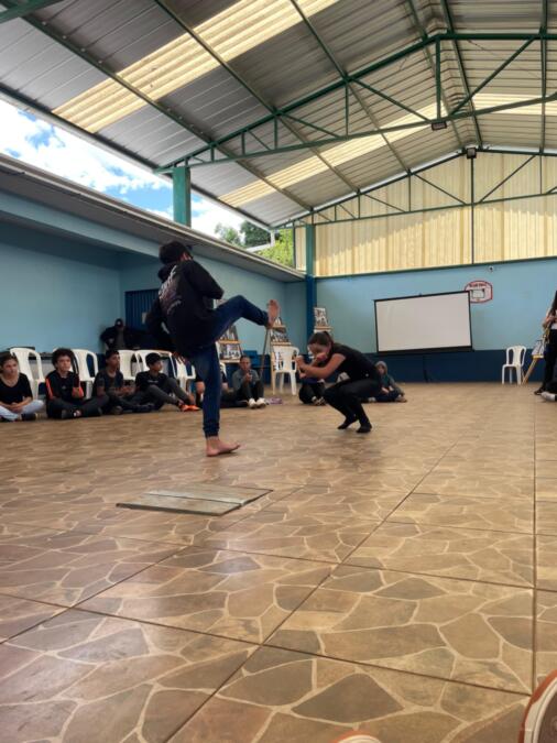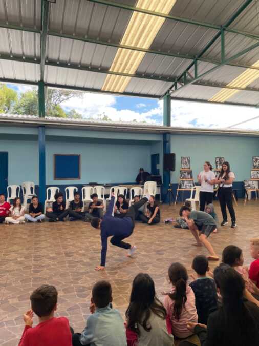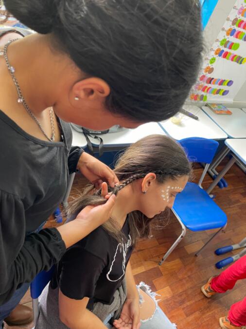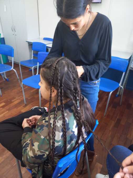 A programação seguiu com uma Oficina de tranças africanas realizada pelos alunos do 8º e 9º anos, em que os estudantes puderam aprender sobre a tradição, simbolismo e técnicas dos penteados típicos da cultura afro. Paralelamente, as turmas promoveram uma Oficina de jogos africanos, que proporcionou momentos de diversão e aprendizado sobre brincadeiras tradicionais de diferentes países do continente. As duas oficinas foram coordenadas pelas professoras Mariza Schena, Cassiane Schena, Tatiane Camargo e Greici Nazário Cardoso.