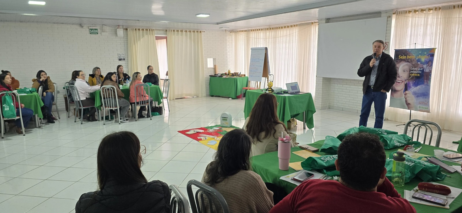 Na última terça-feira, 29 de outubro, Soledade sediou o Encontro Regional de Gestores Escolares do Programa A União Faz a Vida, reunindo cerca de 70 diretores e coordenadores pedagógicos dos seis municípios da área de atuação da Sicredi Botucaraí RS/MG, que fazem parte do programa: Ibirapuitã, Mormaço, Tunas, Soledade, Fontoura Xavier e Pouso Novo, para refletir sobre liderança, gestão participativa e os impactos da educação cooperativa nas escolas.