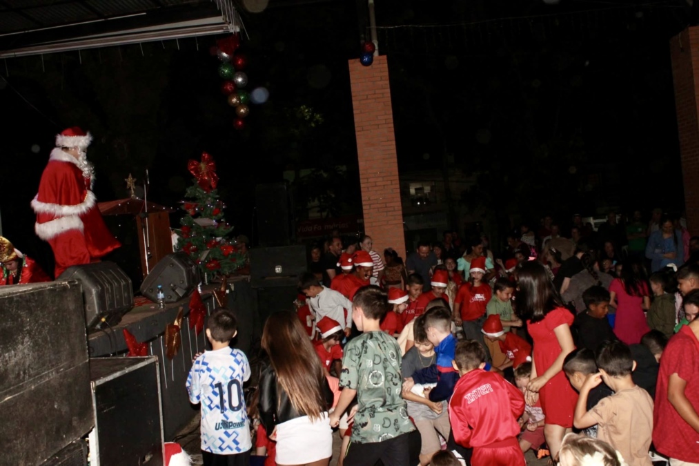 A noite reuniu um público expressivo na praça, que acompanhou atentamente todas as atividades programadas para o início das festividades natalinas.