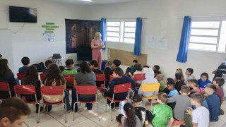 Cassiana também agradeceu, em nome da Administração Municipal, a presença da escritora Sonia Salete Morais, enfatizando a importância de proporcionar aos estudantes o contato direto com quem vive a literatura na prática.